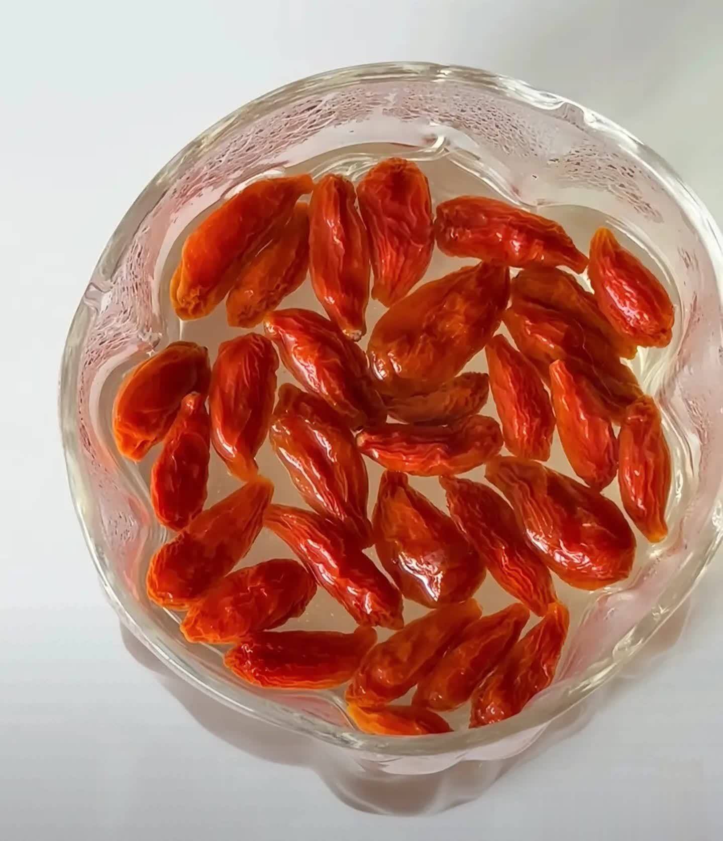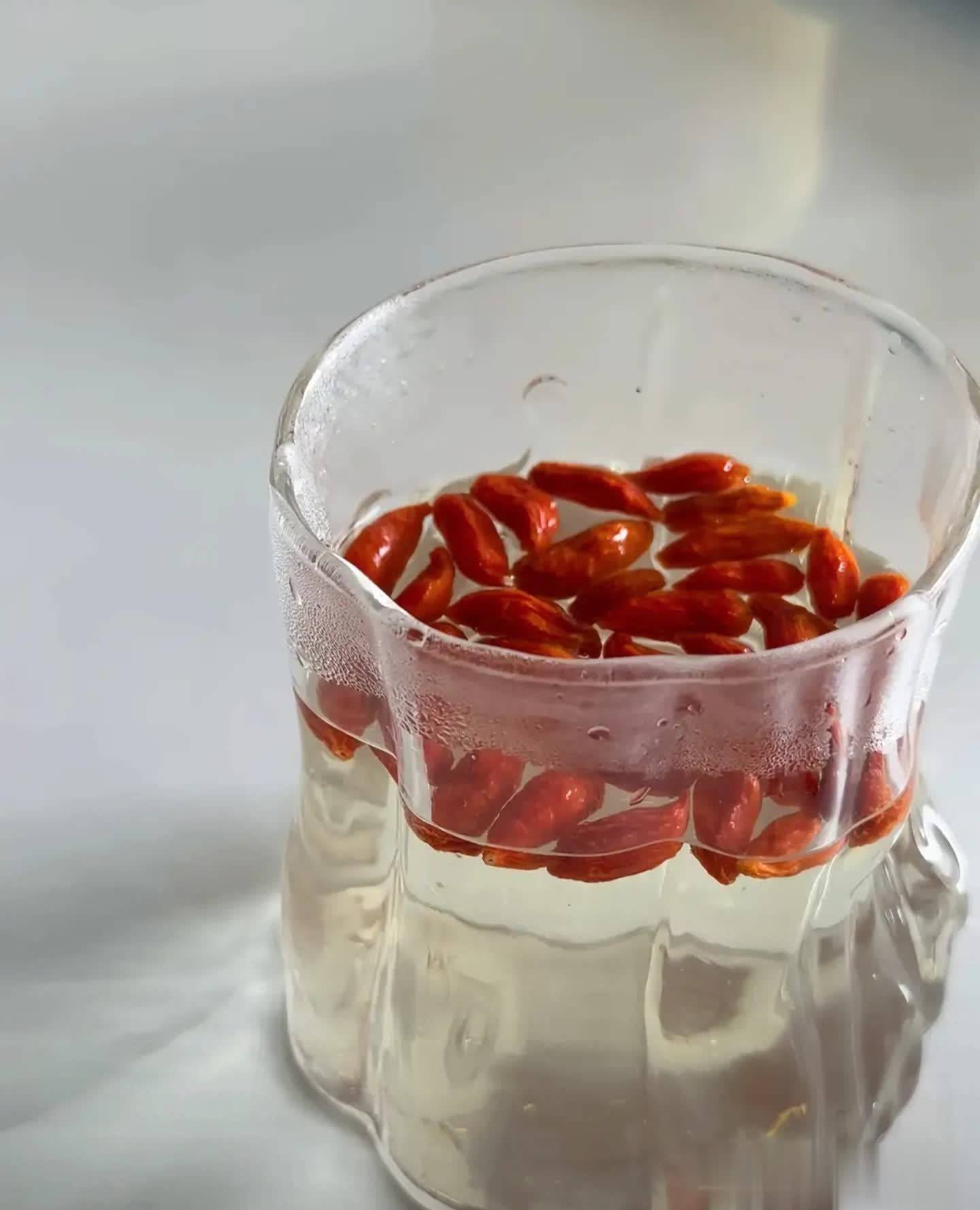 食材处理小技巧:泡水前用流动的温水冲一下枸杞,去掉表面的灰尘就行,别用开水烫,不然会破坏里面的好东西;一次别放太多,五六颗就够,泡到水变成淡红色、枸杞变软,连枸杞带水一起吃,效果更好。