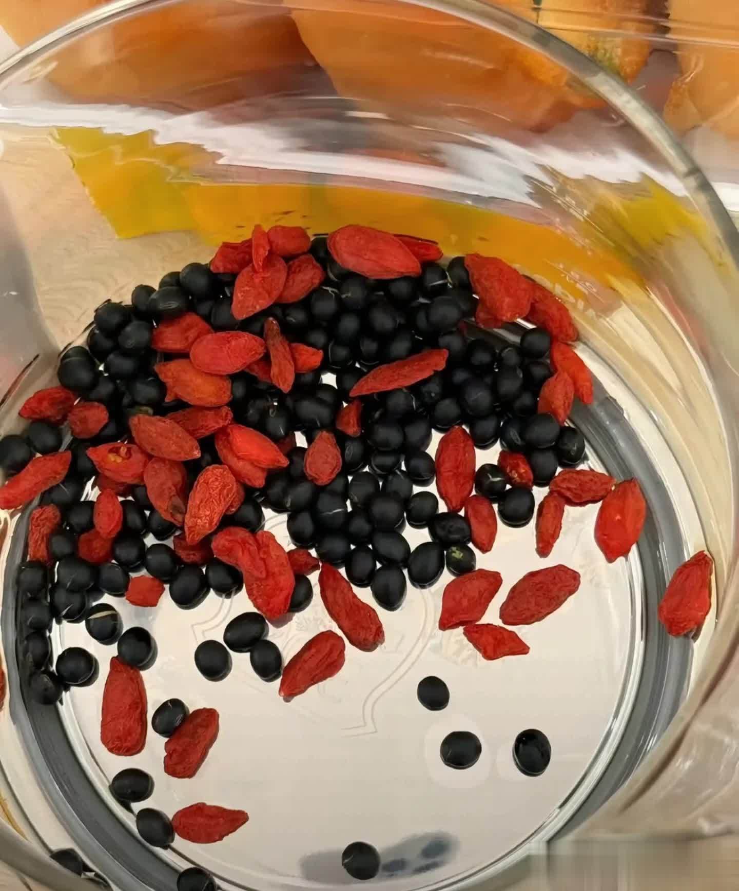 食材处理小技巧:黑豆提前用清水泡2小时,泡到表皮起皱就行,煮的时候更容易出味还不费火;枸杞别太早下锅,等黑豆快煮好的时候放,避免煮得太软烂,营养也能保留住。